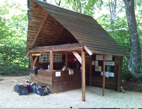Faites 2,7 km et le parc est à gauche à la lisière des bois